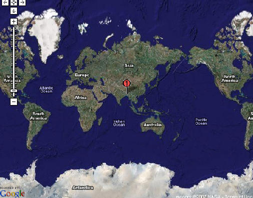 Location of Naogaon in the world map (the number "1" in red indicates the location of the district 'Naogaon' in the world map)